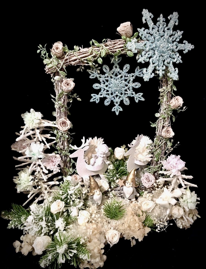 ※アーティフィシャルフラワーやプリザーブドフラワーやドライフラワーを用いたフラワーアレンジメントに関するものは、FloewrsYukaの阿部由香先生によってデザイン・監修及びご制作いただいております。