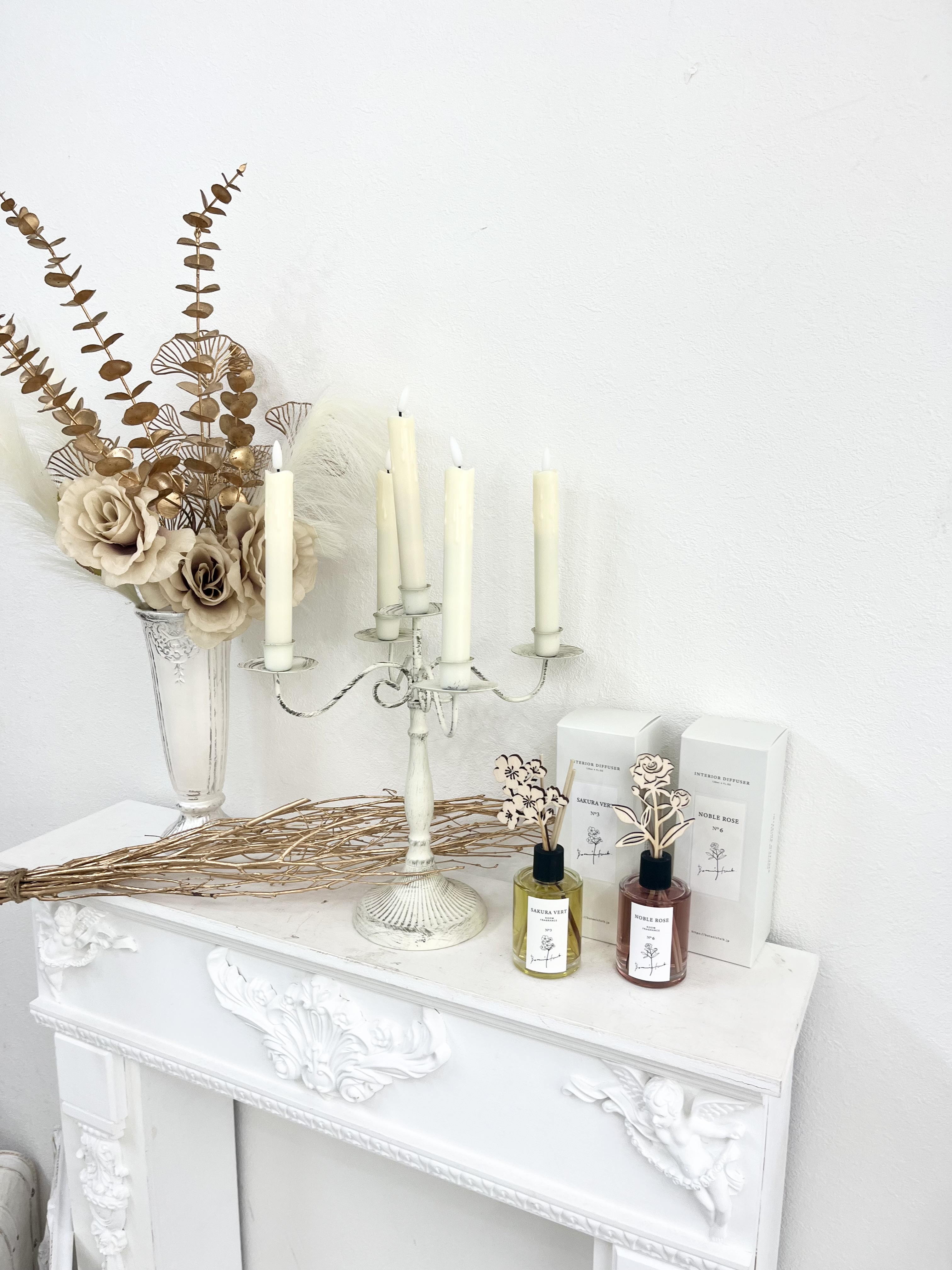 爽やかで軽やかなバラの香りの「NOBLE ROSE」と、透明感のあるグリーンティーと花だけではなく桜の樹木全体の香りがおりなす爽やかな香りの「SAKURA VERT」。どちらも天然成分由来のインテリアディフューザーです。